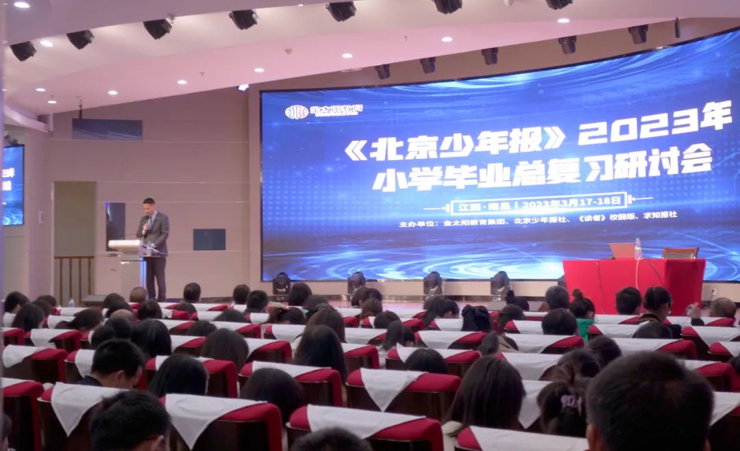 2023年3月18日,由金太阳教育、北京少年报社、《读者》校园版、求知报社主办的以“情境教育视域下的课程建设与教学变革”“小学语、数、英毕业复习策略(分学科)”为主题的小学教学创新暨毕业复习策略研讨会在江西南昌顺利召开。本次会议旨在借势教育变革与创新,提升学校教学效率与办学效益。会议邀请了著名教育专家现场授课,来自全国的教育局局长、副局长、小学校长、副校长、教研室主任、六年级语、数、英骨干老师等教育精英共400余人参会。